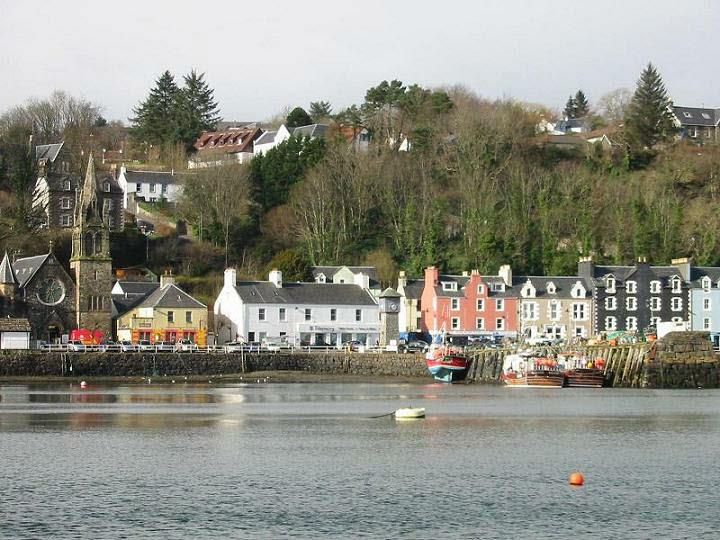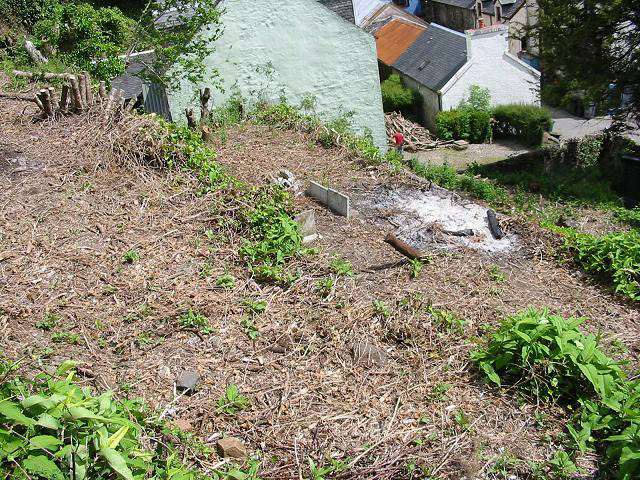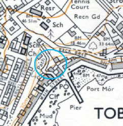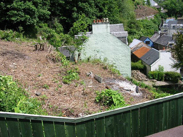 This plot of land is situated in the very centre of Tobermory with a tumbling stream running down one side. It is part of the hill side levelled by three manmade terraces. The upper two terraces give spectacular views over the bay. The ground has previously been cleared as shown in the photos but has become overgrown again.